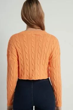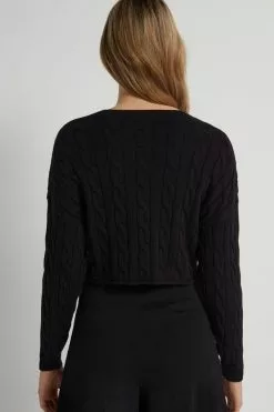 Tezenis Cropped Long-Sleeve Cable Knit Sweater In Fully-Fashioned Cotton