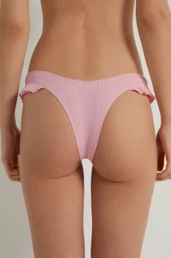 Tezenis High-Cut Ribbed Cotton Brazilian Panties With Ruffles