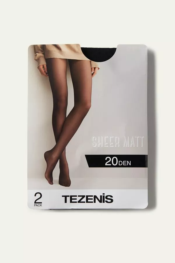 Sheer 20 denier tights with nude toe and flat stitching. Sheer, elasticated and soft. Suitable for all seasons. Ideal for late summer wear and perfect under trousers on colder days. Low rise. Each packet contains 2 pairs of tights.