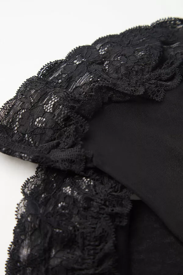 20 Den veiled-effect stay-ups with flower lace flounce and internal silicone band to ensure perfect adhesion and wear.