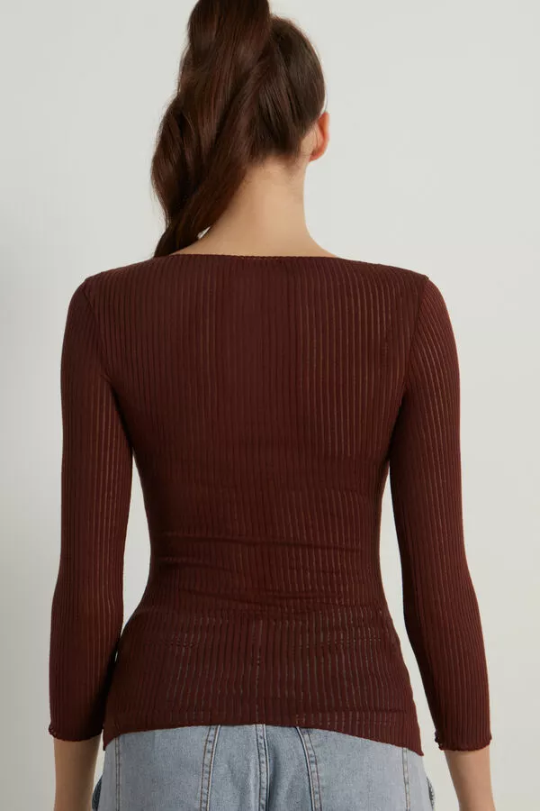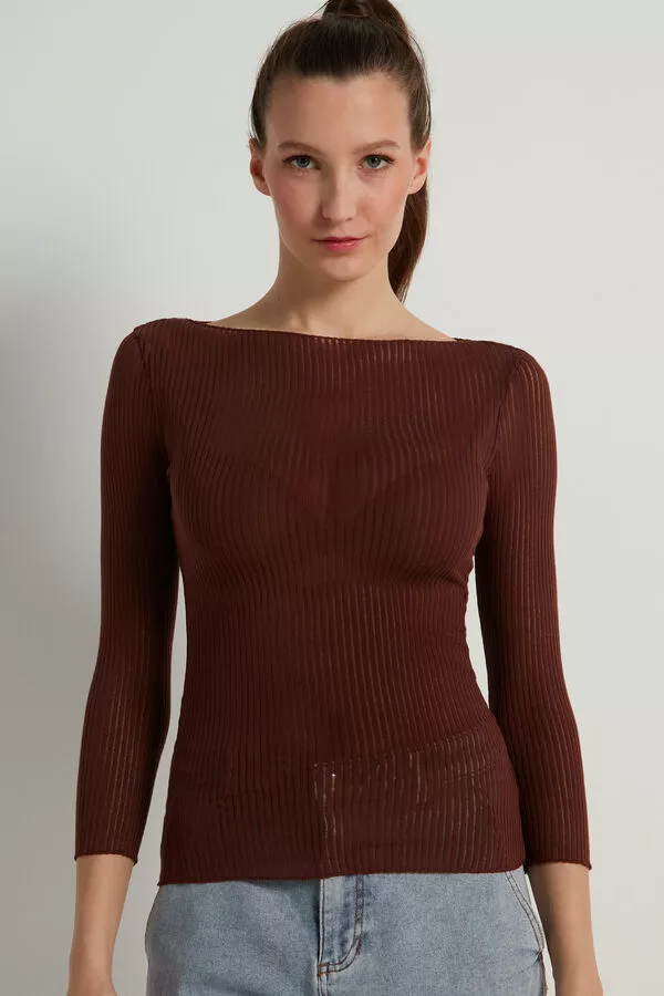 Tezenis 3/4-Length-Sleeve Ultralight Ribbed Cotton Boat-Neck Top