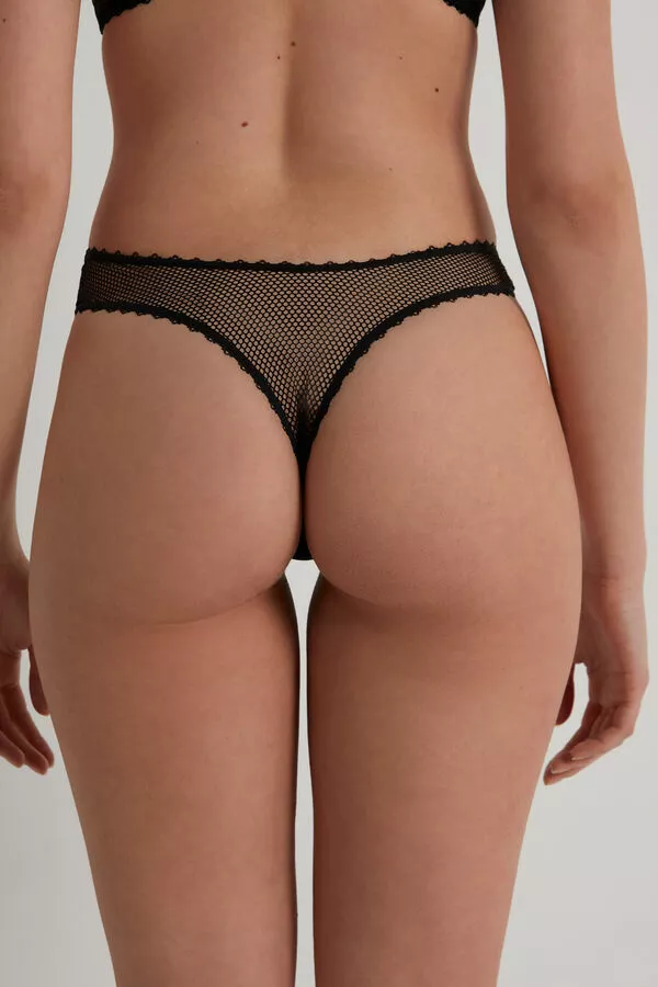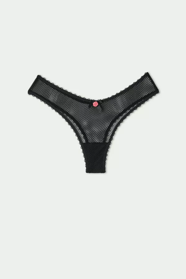 Tezenis Black Net High-Cut Brazilian Panties