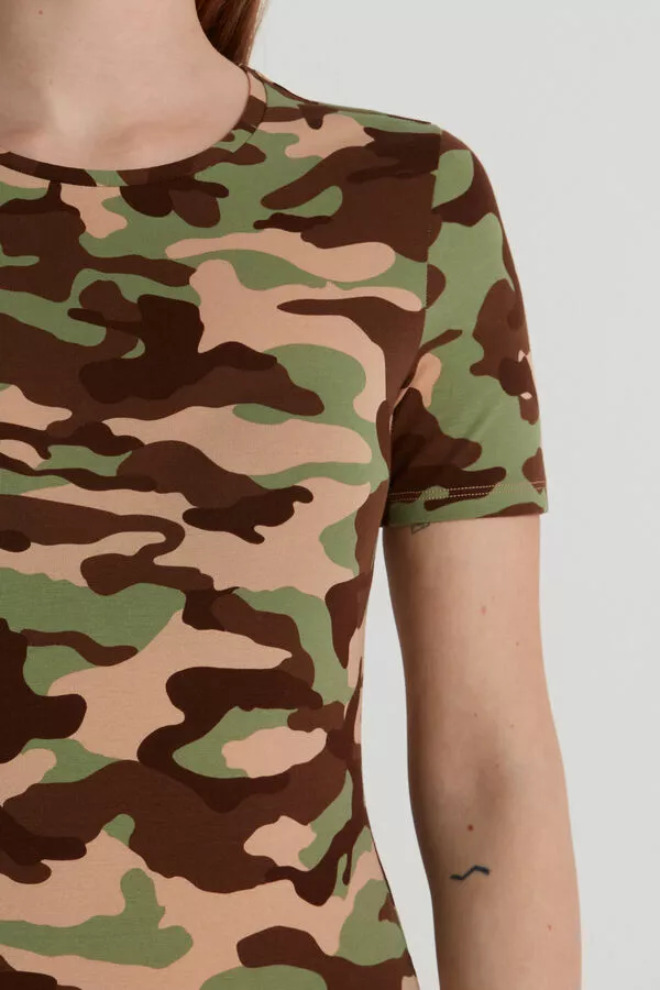 Crewneck printed soft and comfortable stretch cotton T-shirt. Snug fit.