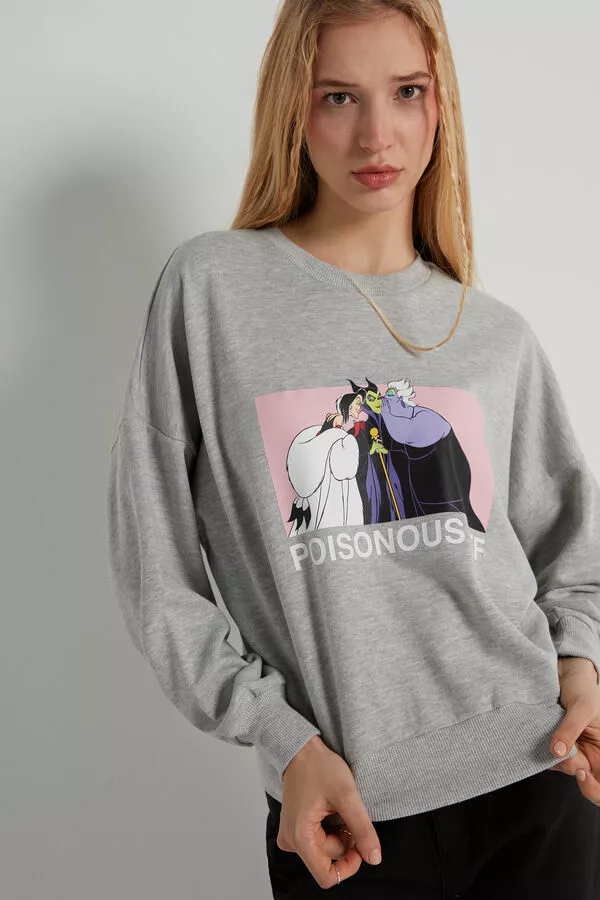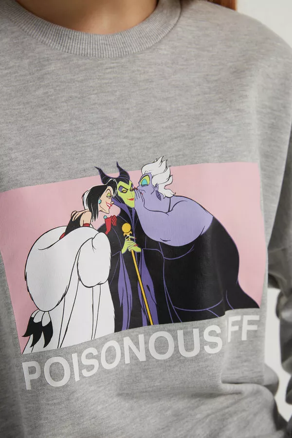 Long sleeve crewneck cotton sweatshirt with Disney Villains print. Cropped design with elastic hem and dropped shoulders.