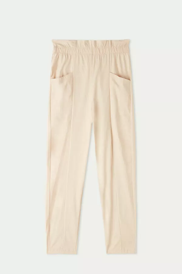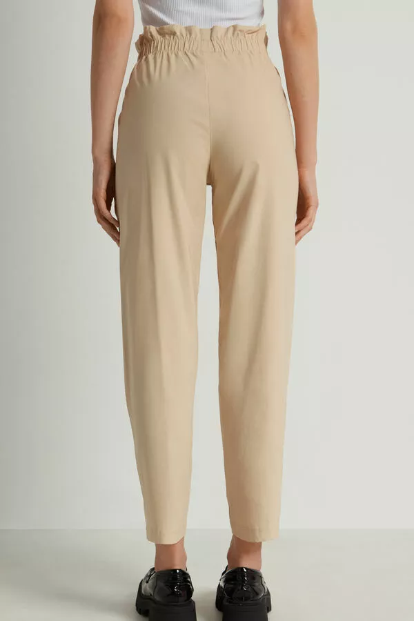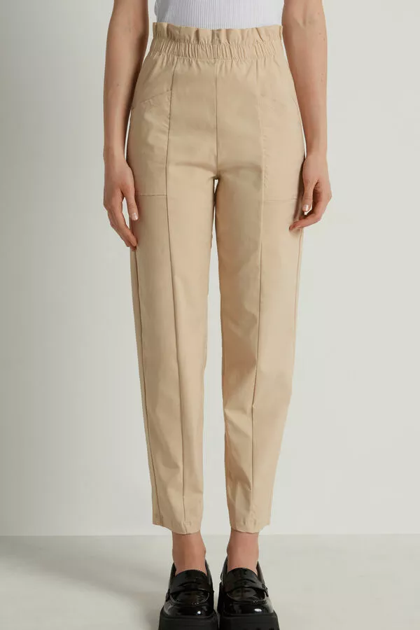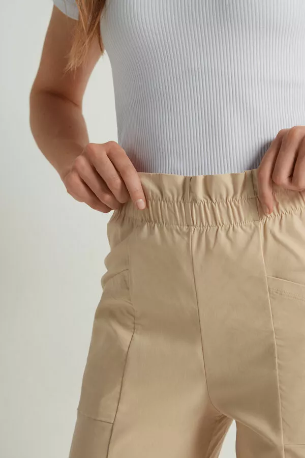 High waist joggers with micro-ruching, made in stretch fabric, with side pockets.