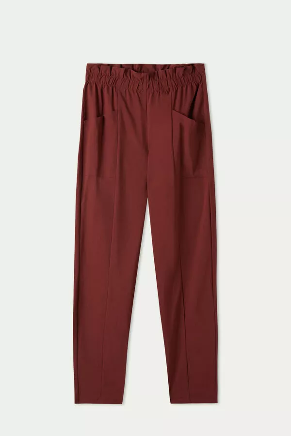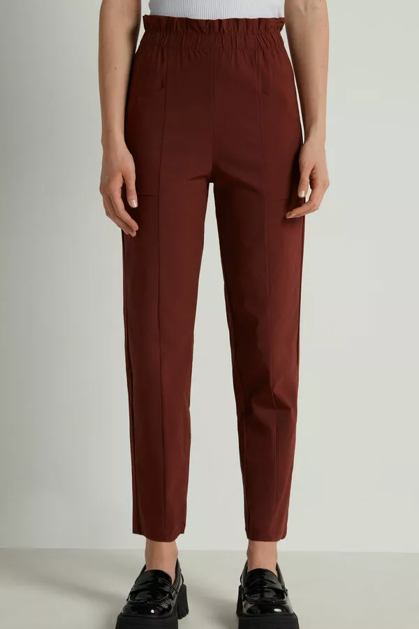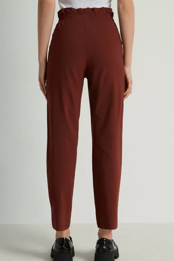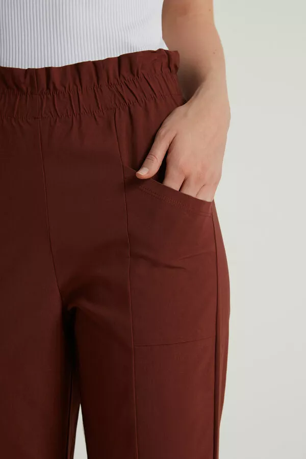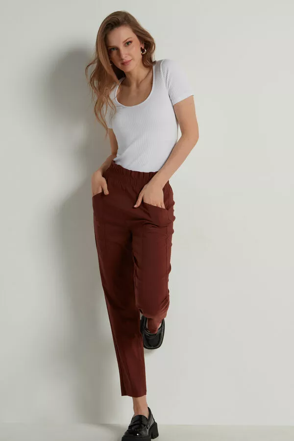 High waist joggers with micro-ruching, made in stretch fabric, with side pockets.