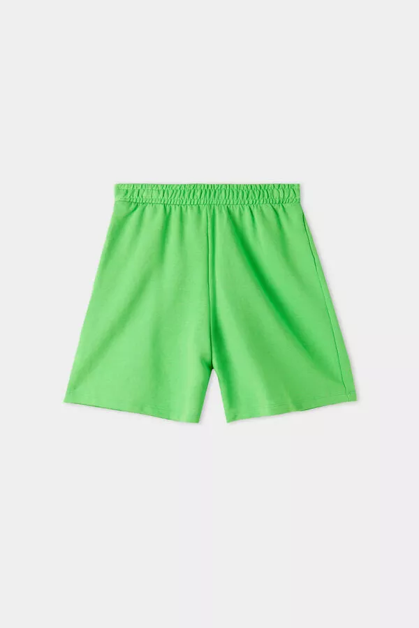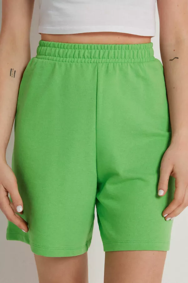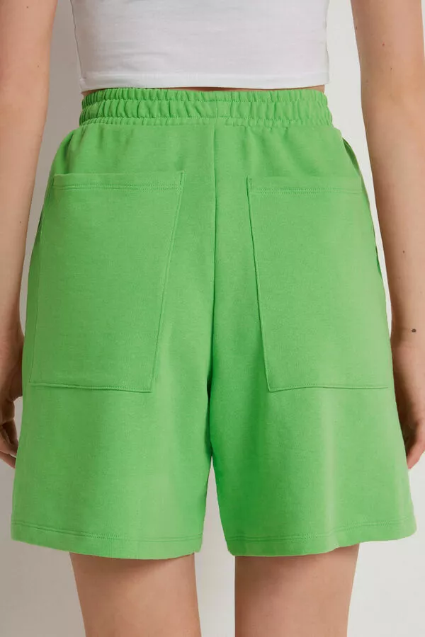 High-waisted cotton fleece Bermuda shorts with pockets on the back.