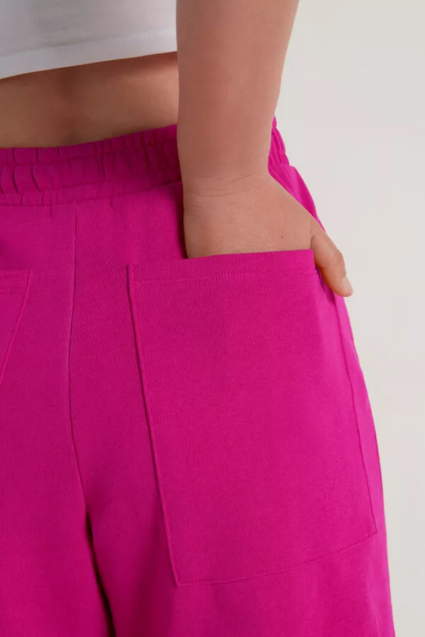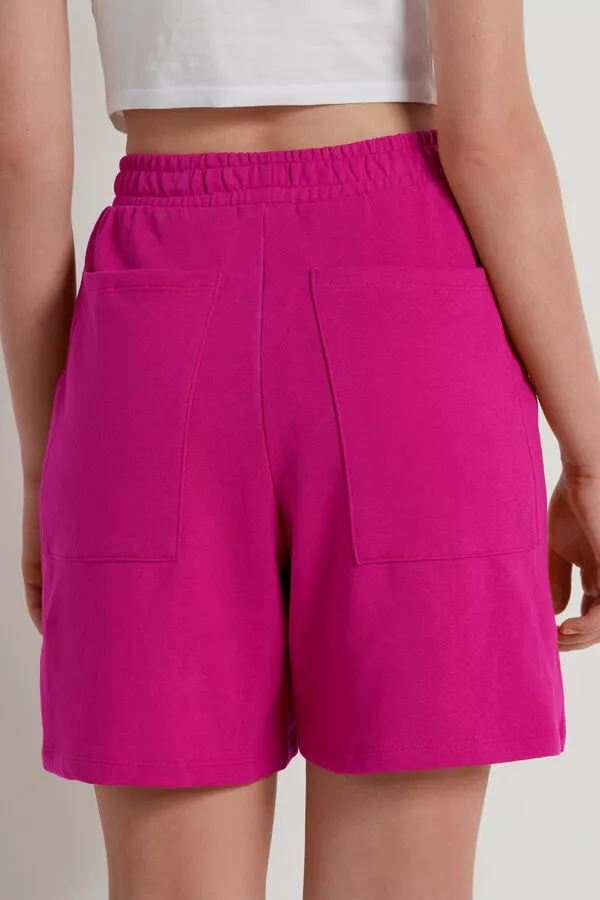 High-waisted cotton fleece Bermuda shorts with pockets on the back.