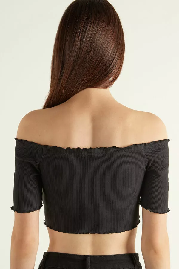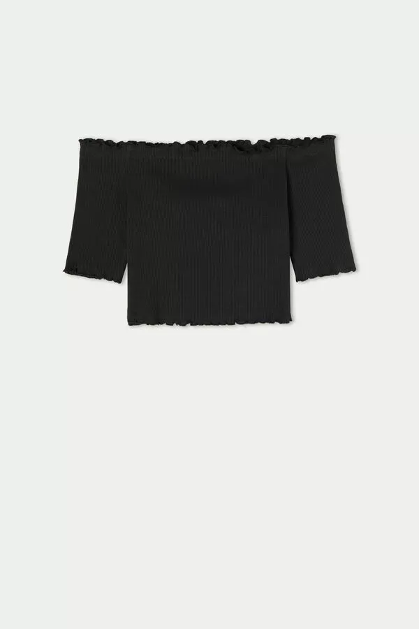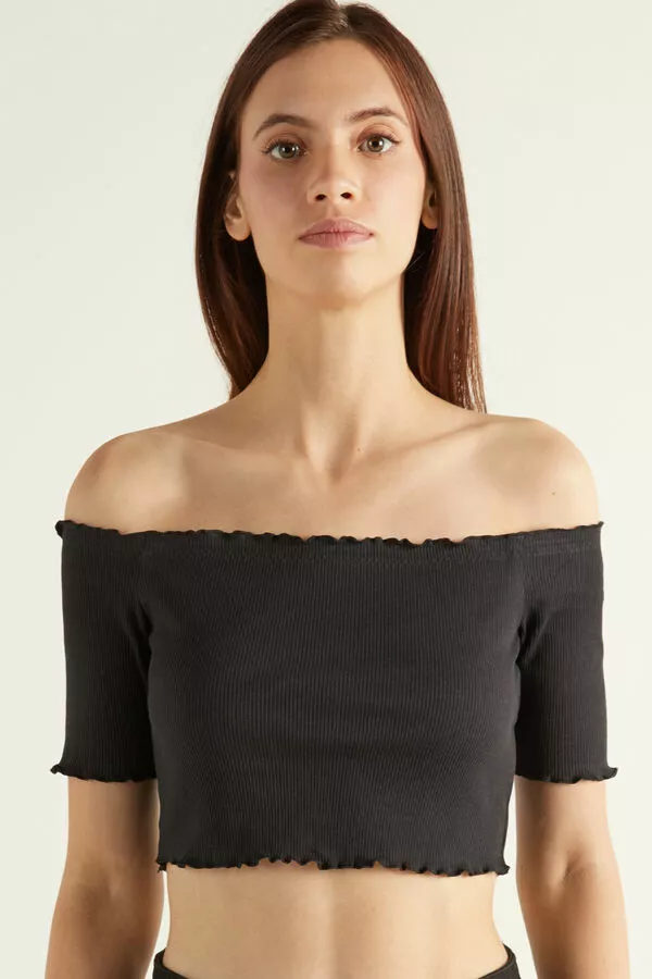 Tezenis Half Sleeve Lettuce Leaf Trim Ribbed Crop Top