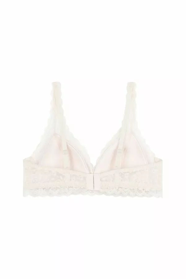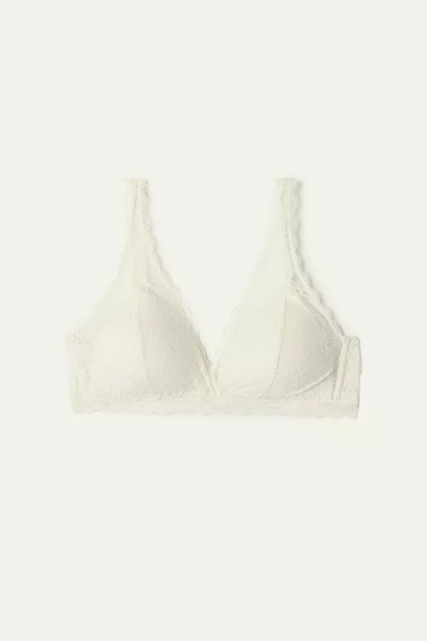 Havana lace triangle bralette with deep V-neck and shaped wireless cups. Adjustable straps and four-position double hook-and-eye fastening. Perfect for those looking for a bra with maximum comfort, and a very natural effect.
