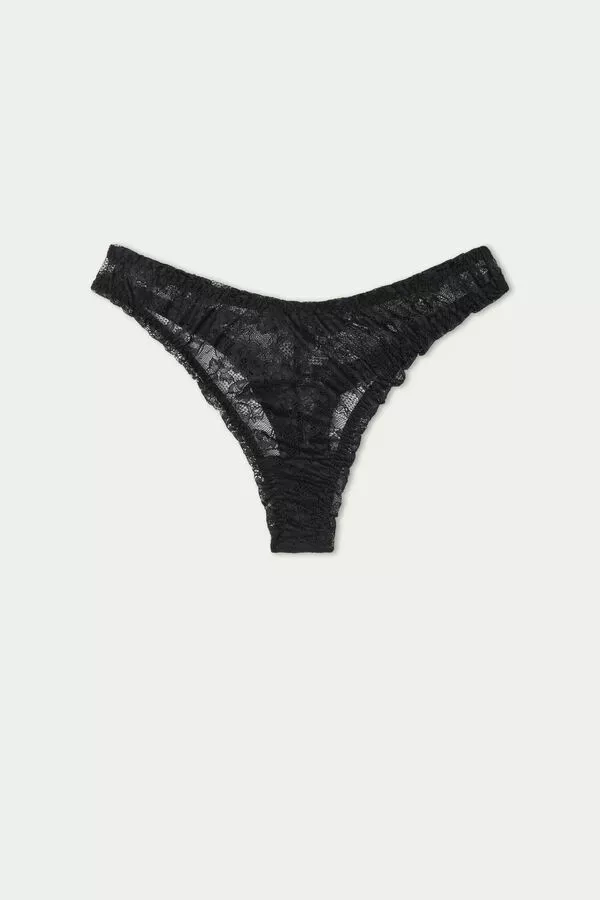 Tezenis High-Cut Gathered Lace Brazilian Panties