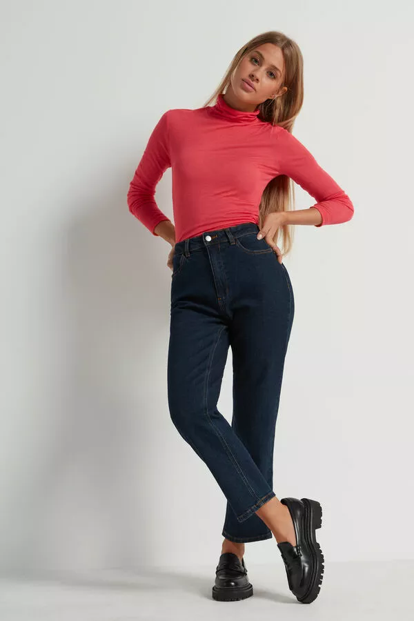 Tezenis High Waist Straight Leg Denim Pants With Pockets