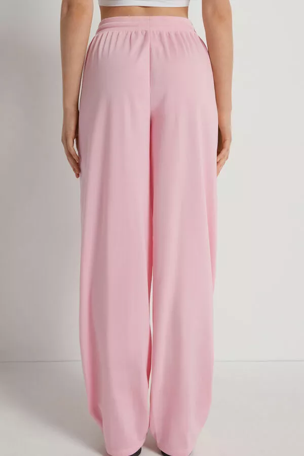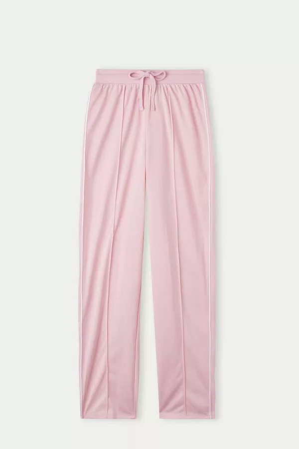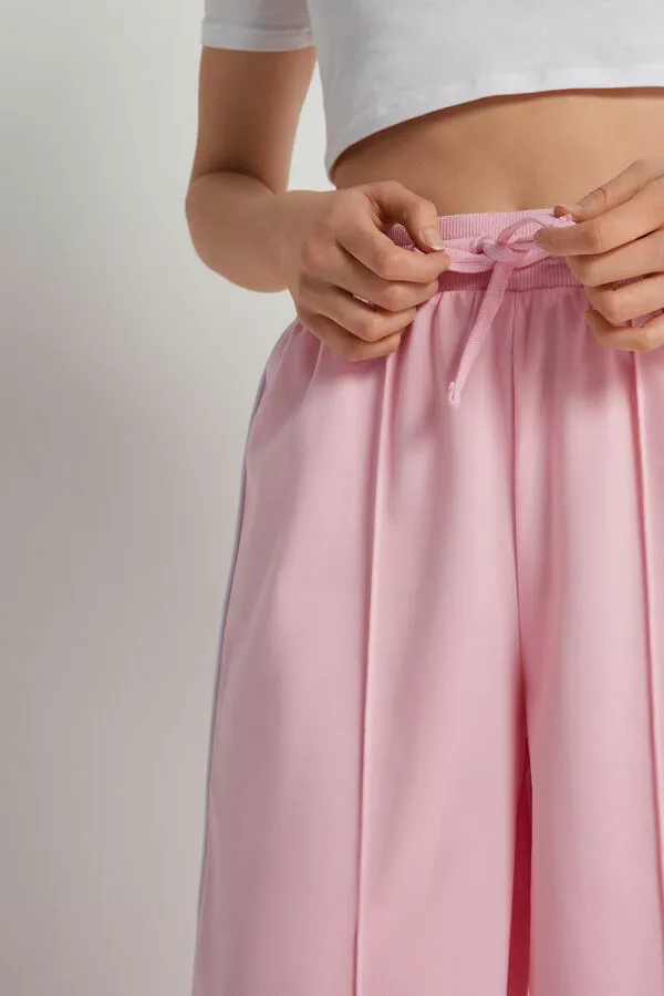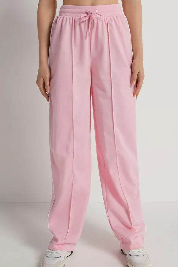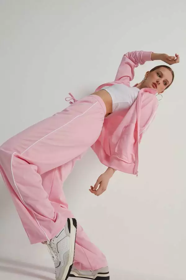 High-waist sweatpants with adjustable drawstring and piping down the sides. Straight, wide cut. Paired with the knit sweatshirt with piping.