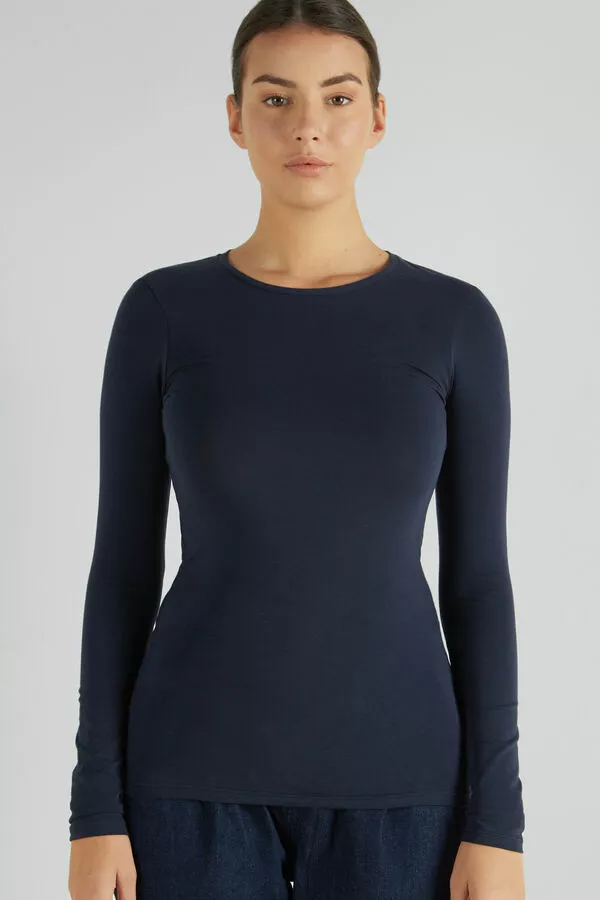 Tezenis Long-Sleeve Crew-Neck Stretch-Cotton Top