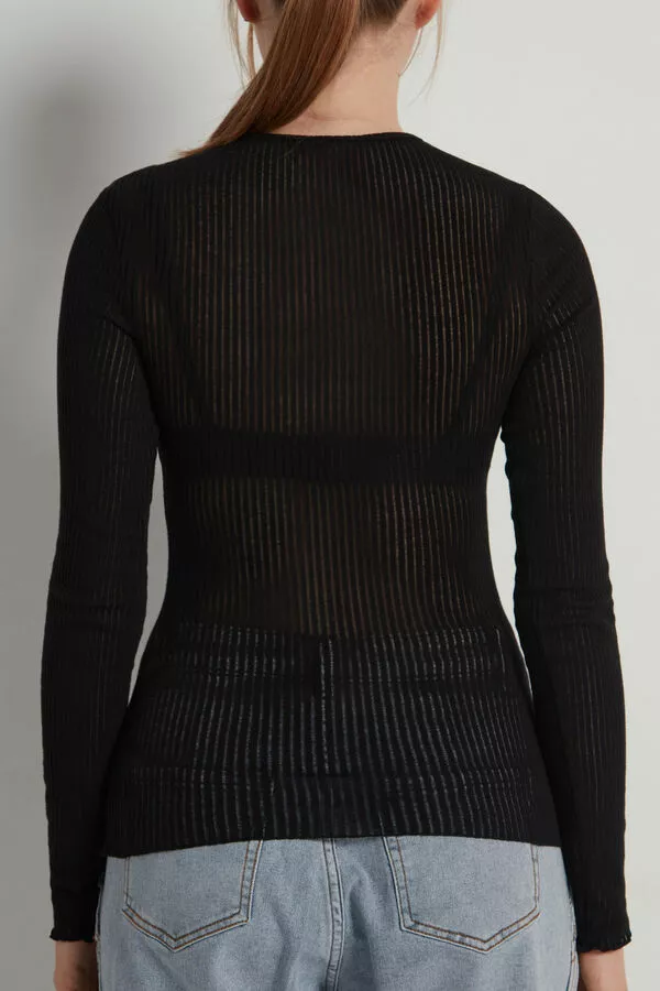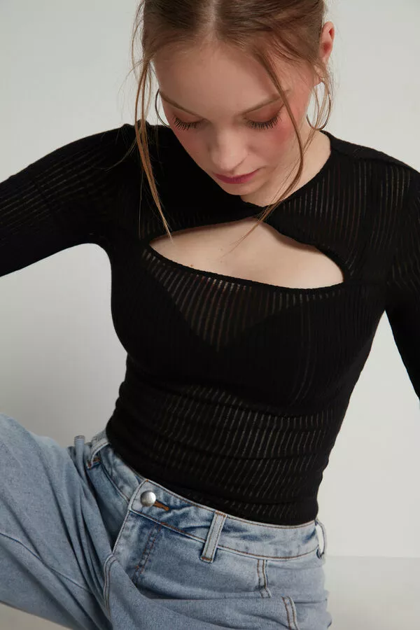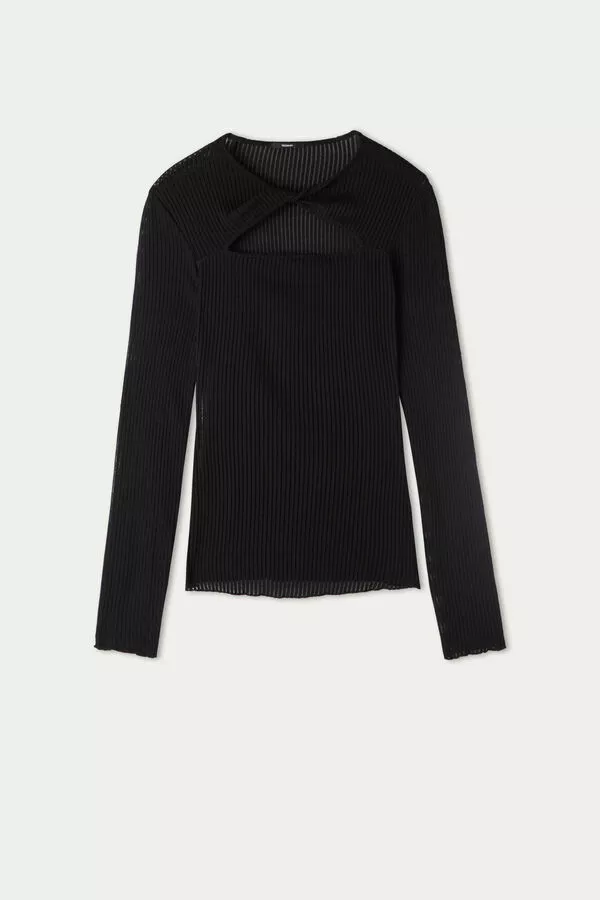 Tezenis Long-Sleeve Crew-Neck Ultralight Ribbed Cotton Cut-Out Top