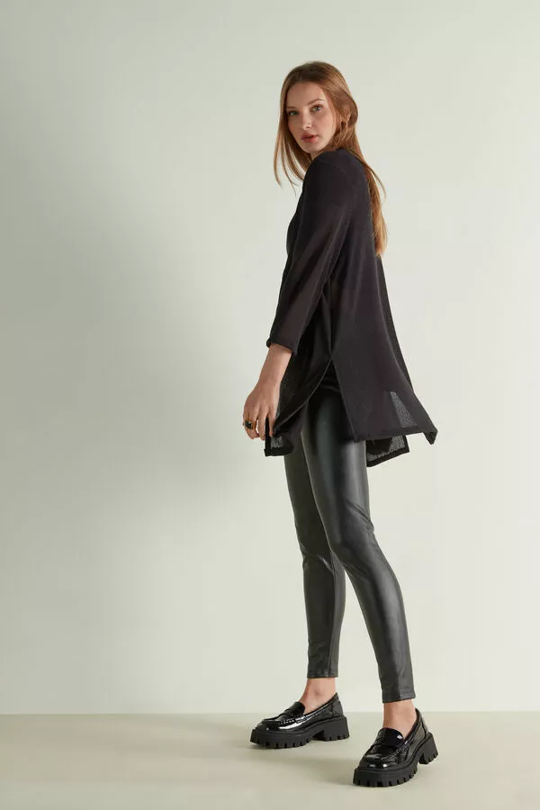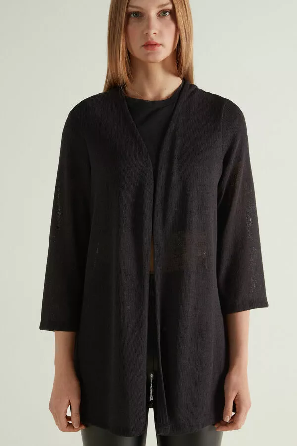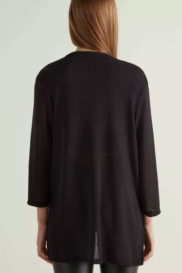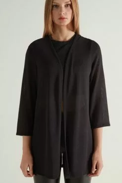 Long sleeve open front lightweight viscose cardigan, without buttoning.