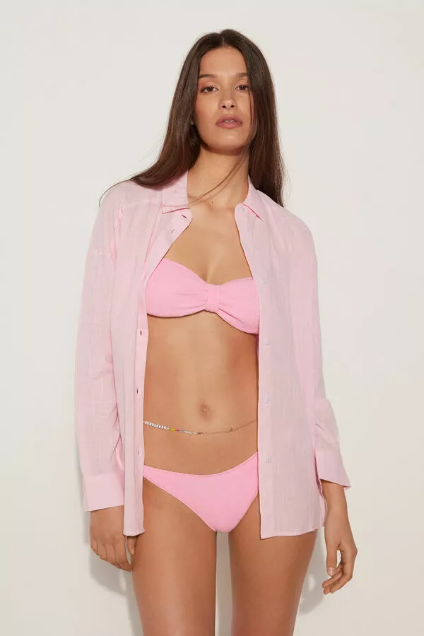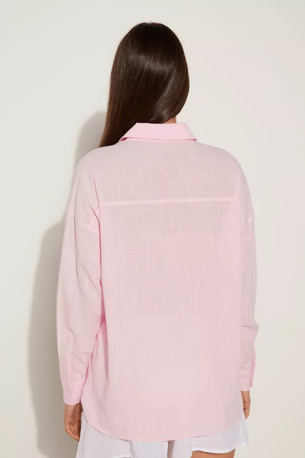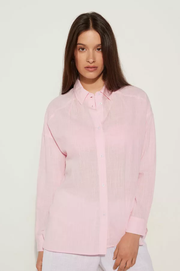 Long-sleeved shirt in linen-effect cotton canvas. Buttoned cuffs.