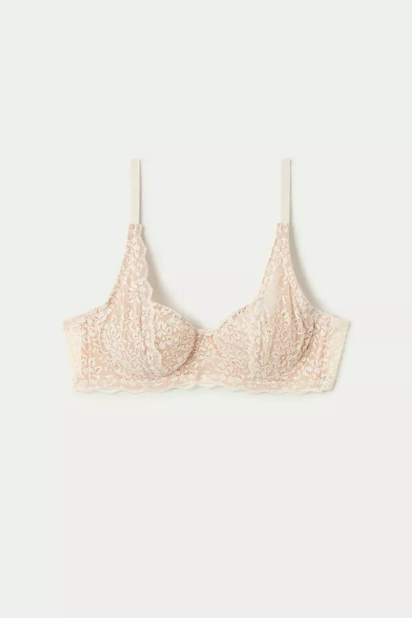 Paris underwire unpadded balconette bra. Made of soft recycled lace, lined with tulle. Perfect for women with full bust who prefer a natural look. Adjustable straps and dual hook-and-eye closure with four hook settings each.
