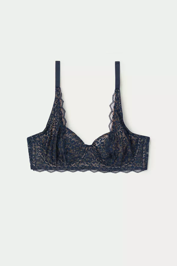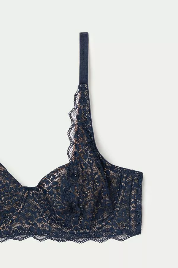 Paris underwire unpadded balconette bra. Made of soft recycled lace, lined with tulle. Perfect for women with full bust who prefer a natural look. Adjustable straps and dual hook-and-eye closure with four hook settings each.