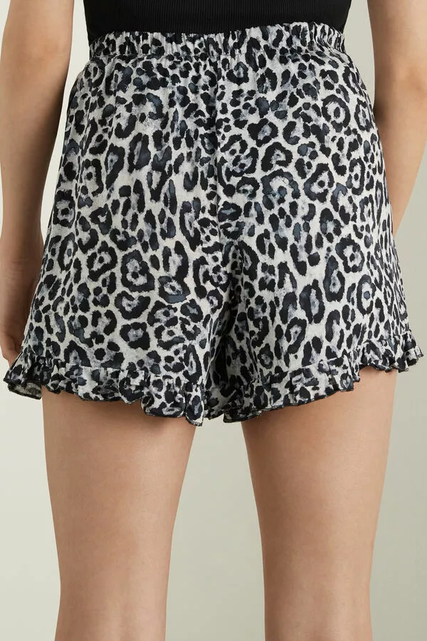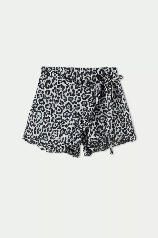 High waist plain weave skort with wrap closure and ruching at the waist.