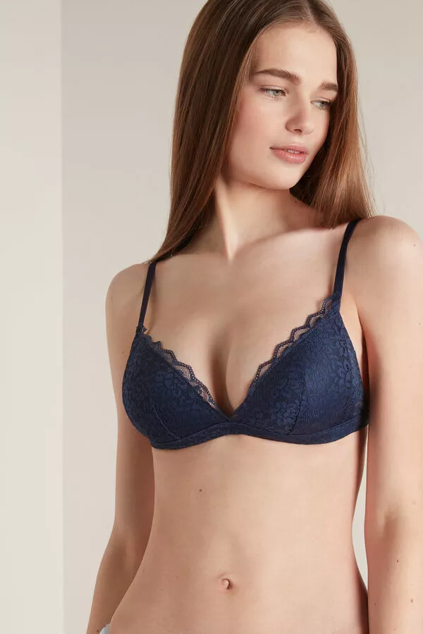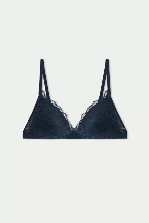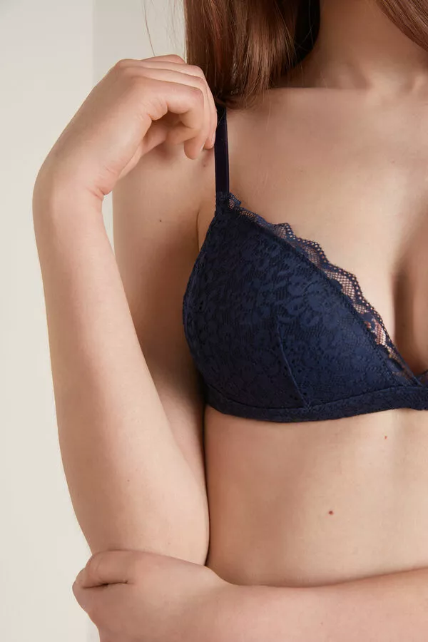 Positano lace padded volume-effect wireless triangle bra. The straps are adjustable and the thin underbust band has a single hook closure.