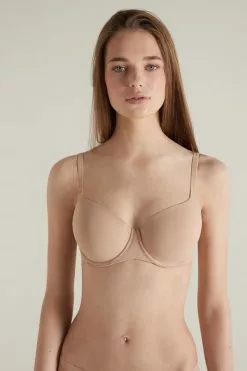 Prague balconette bra with slightly padded cup, underwire and seamless heart neckline. Snug fit with excellent support, ideal for ample busts.