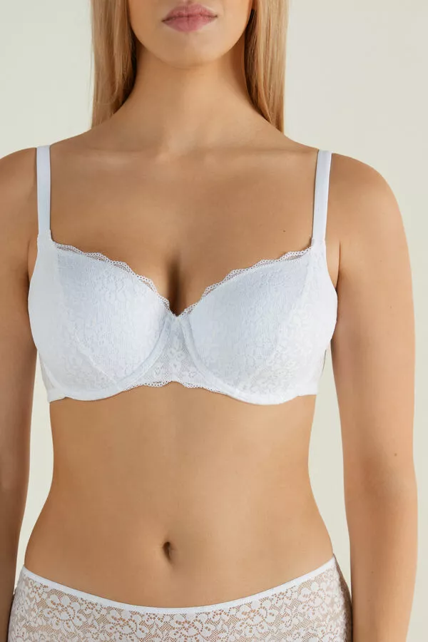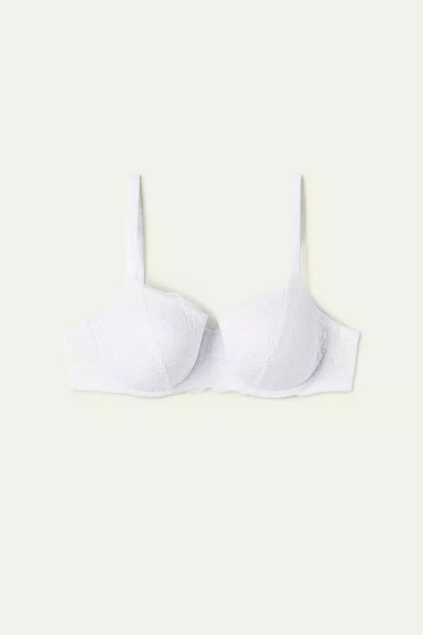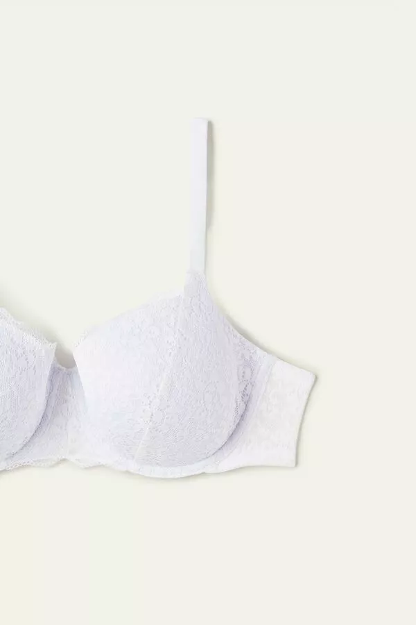 Prague lightly padded underwire soft recycled lace stitchless heart shaped neckline balconette bra. Full coverage and support, perfect for larger busts.