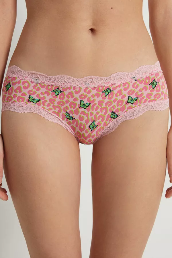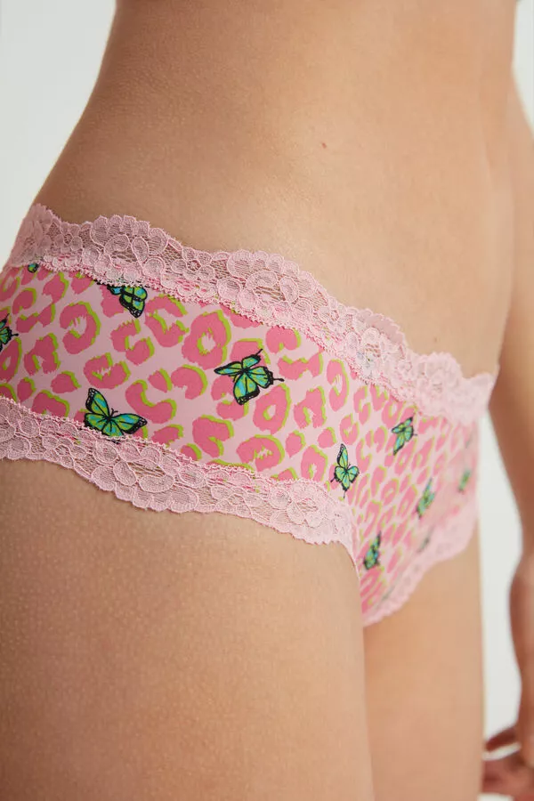 Tezenis Printed Microfiber And Lace Hipster Brazilian