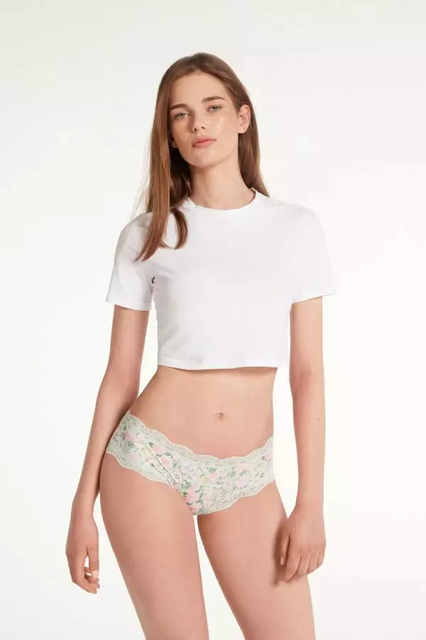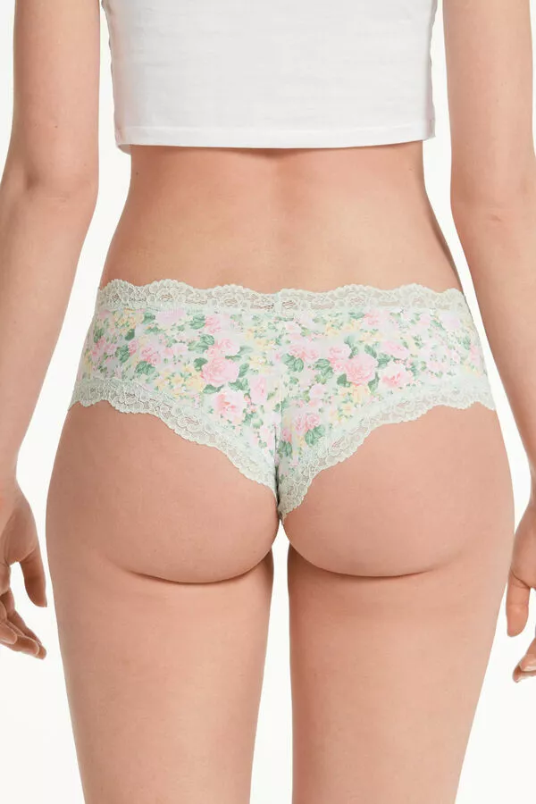 Tezenis Printed Microfiber And Lace Hipster Brazilian