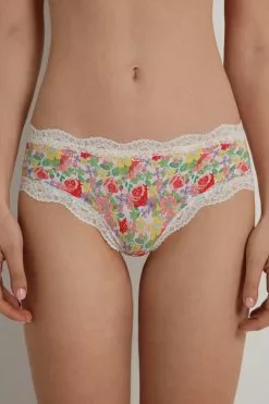 Tezenis Printed Microfiber And Lace Hipster Brazilian