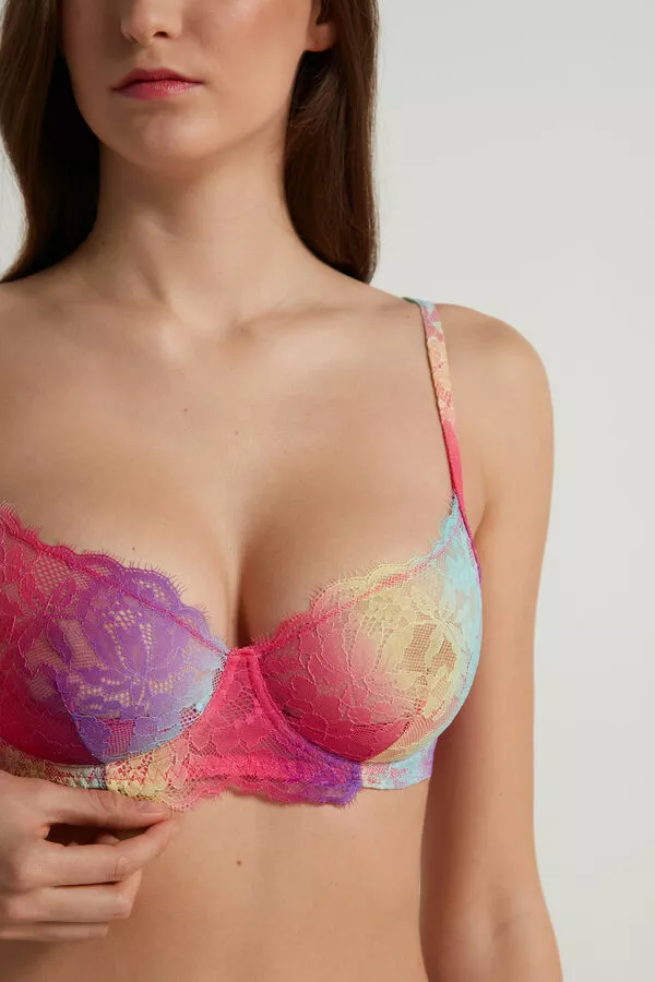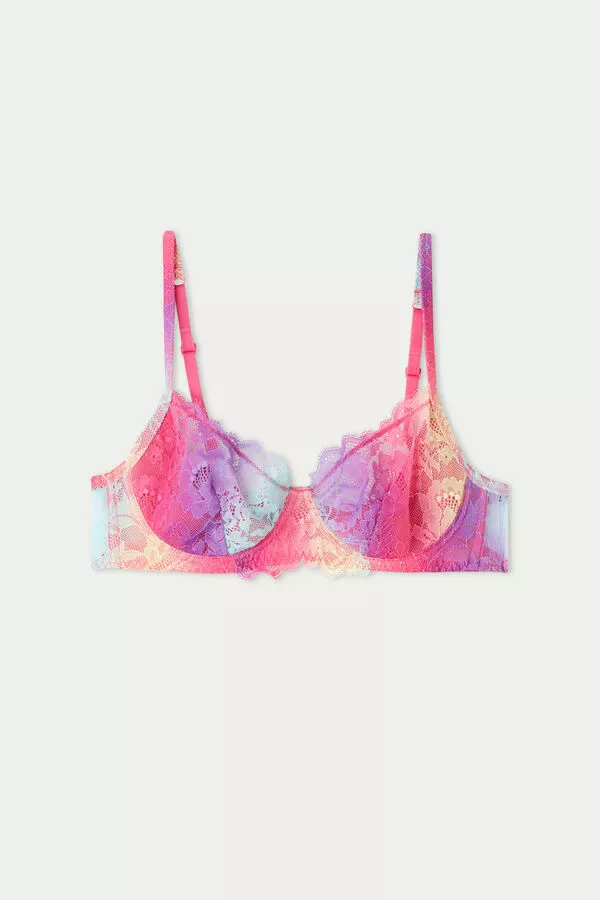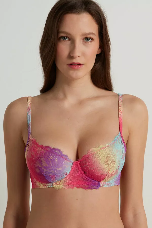 Underwire unpadded Paris balconette bra made of lace with a floral motif with pastel shading. Especially suited for those with larger breasts who want a more natural effect. The straps are adjustable and the double hook-and-eye back closure features four rows of hooks. In sizes 38B and up, the number of hook-and-eye fastenings and the size of the straps may vary to ensure a better fit and comfort.