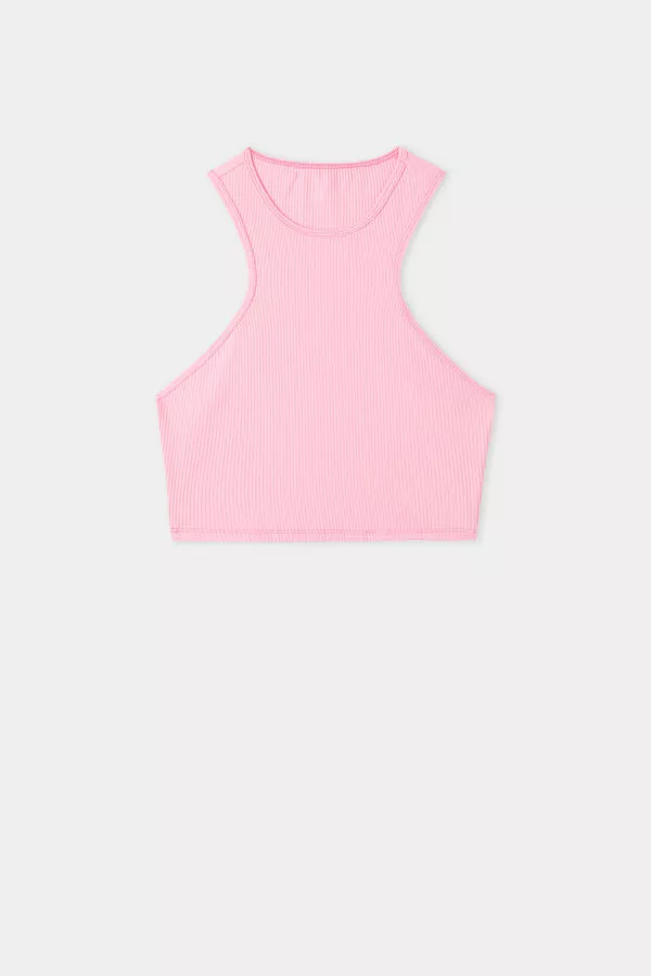 Tezenis Ribbed Cotton Cropped Racerback Tank Top