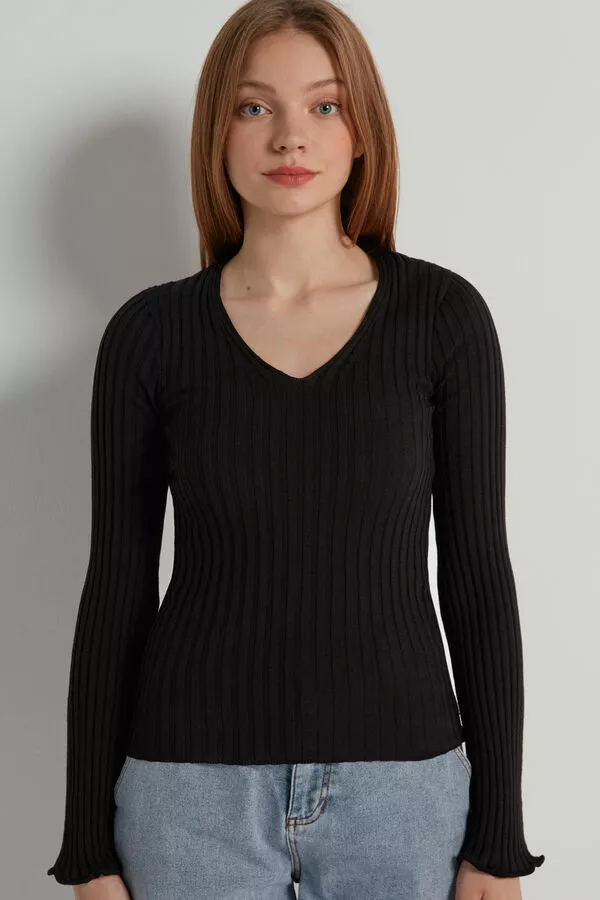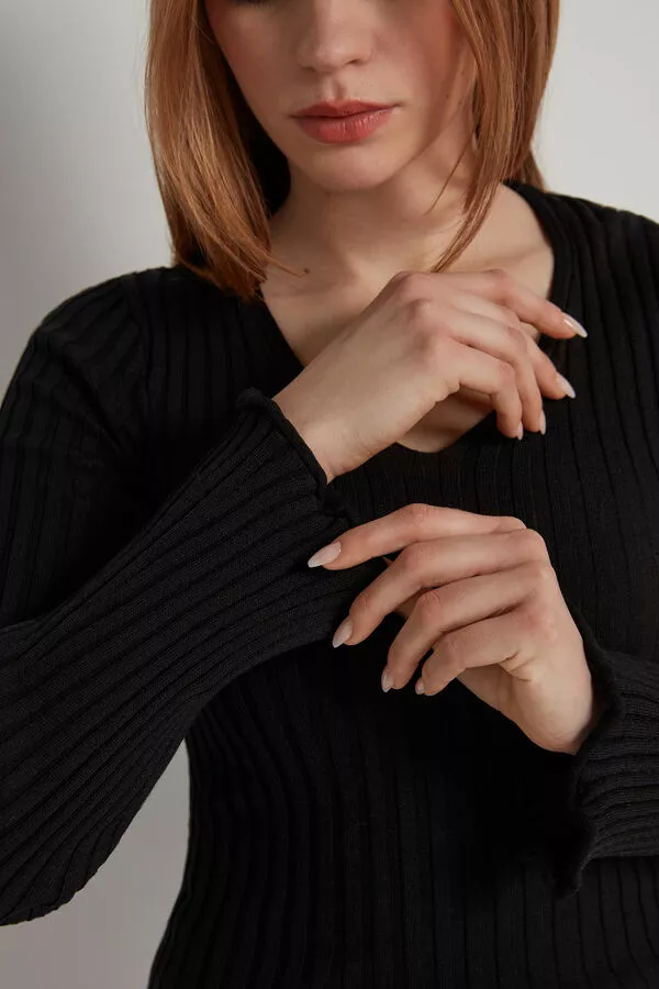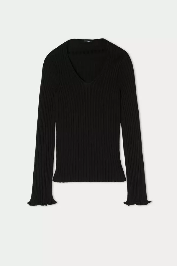 Tezenis Ribbed Long-Sleeve V-Neck Sweater