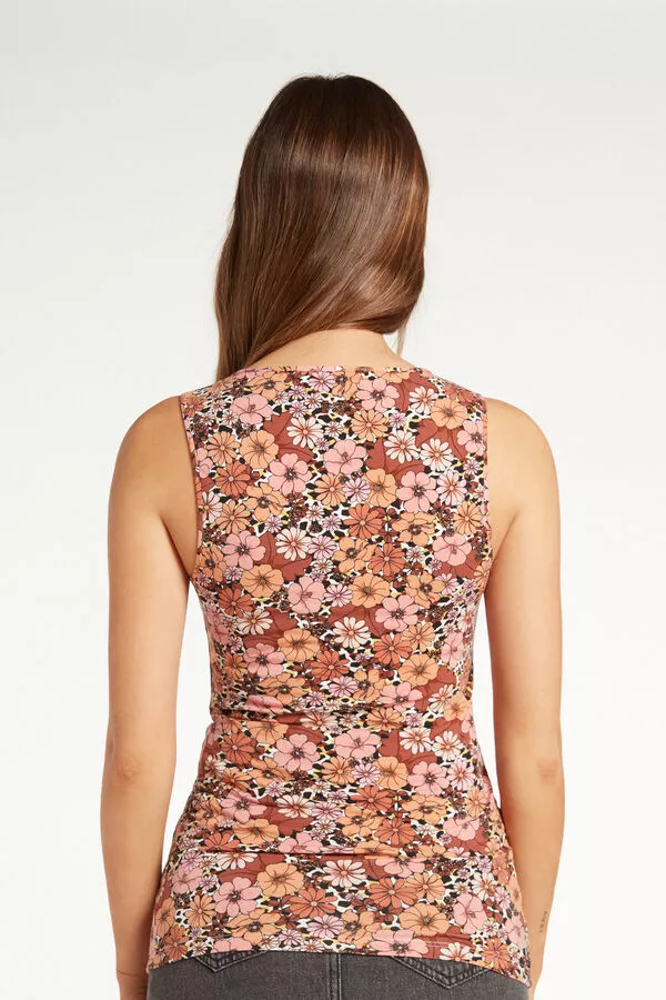 Elasticized cotton tank top with wide straps and a rounded V-neck for a touch of elegance.