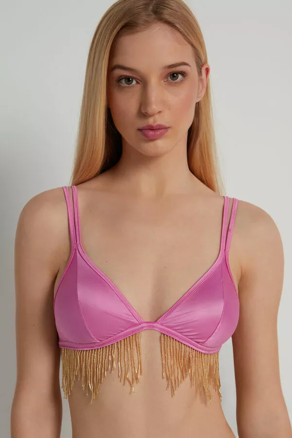 Tezenis Satin Triangle Bra With Beaded Fringe