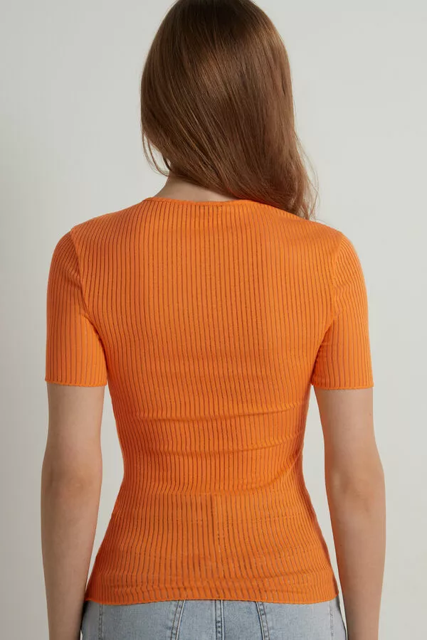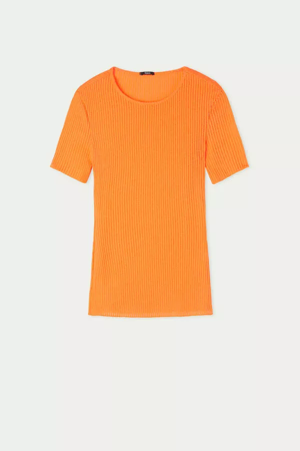 Tezenis Short-Sleeve Crew-Neck Ultralight Ribbed Cotton Top