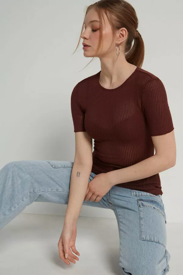 Tezenis Short-Sleeve Crew-Neck Ultralight Ribbed Cotton Top