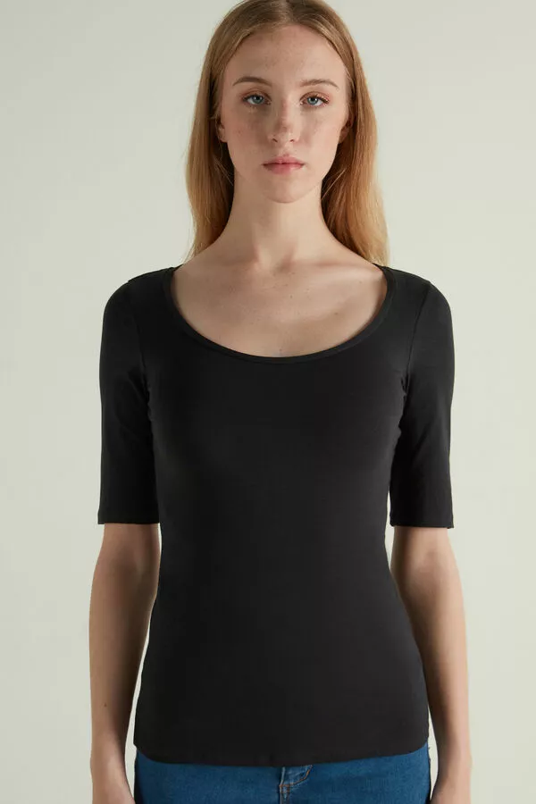 Tezenis Short-Sleeve Scoop-Neck Top In Cotton