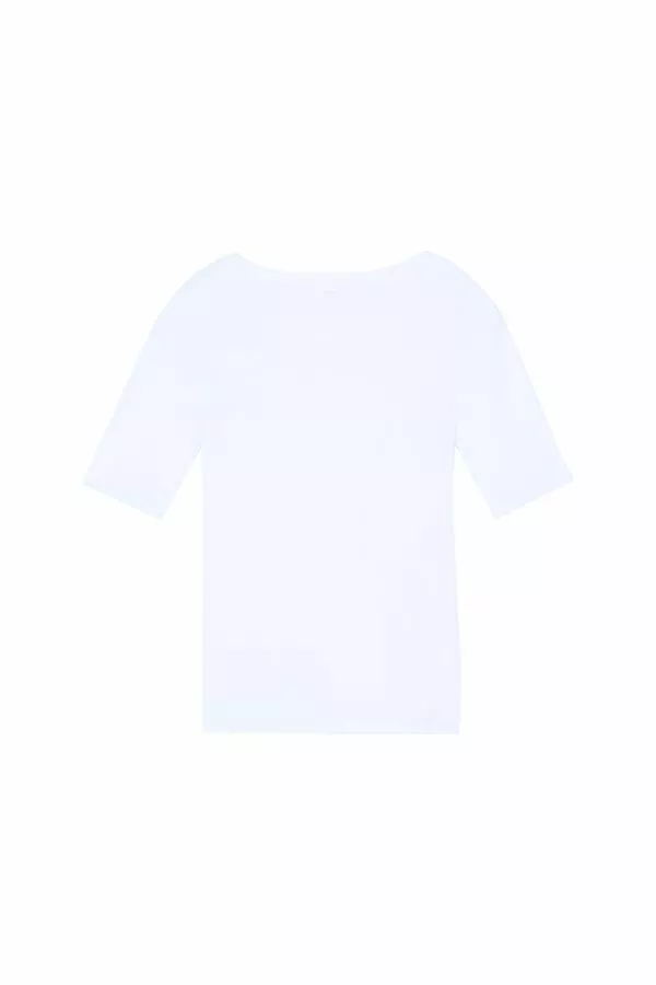 Short sleeve scoop neck top in stretch cotton. The model is 172 cm tall.