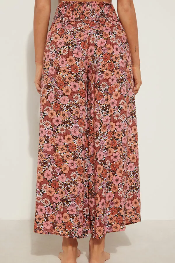 Viscose canvas Hakama pants with smocked waistband. Loose fit.