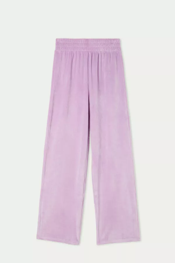 Solid color chenille pants with soft elastic waist. Comfortable fit, can be worn high or low waisted.