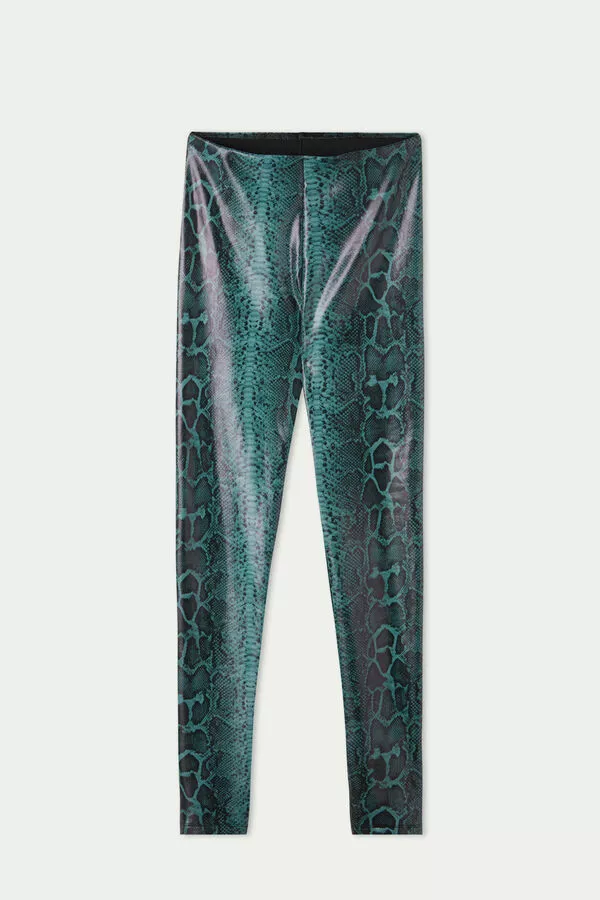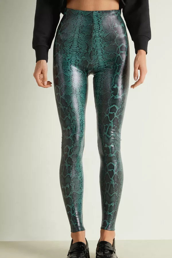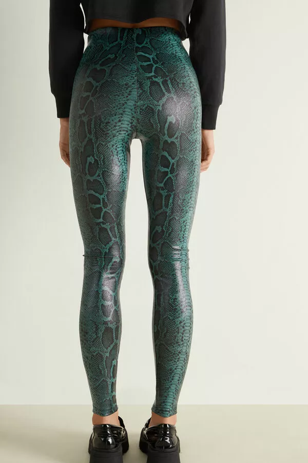 Tezenis Thermal Coated-Effect Python-Print Leggings