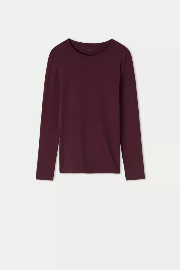 Long-sleeve crew-neck top made of thermal modal and cotton with soft fleece lining. Tight fit.