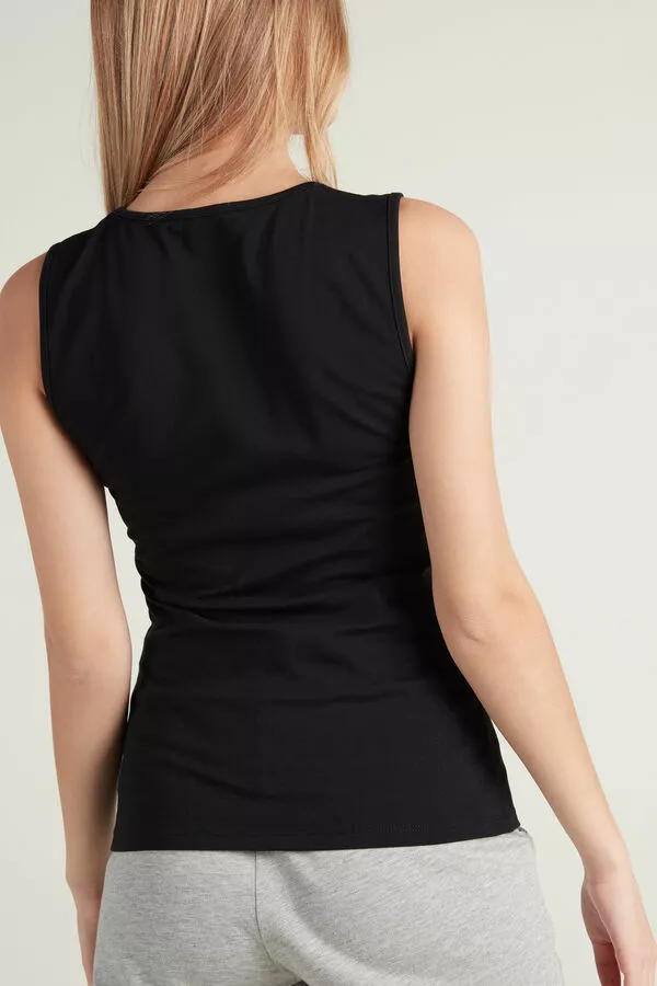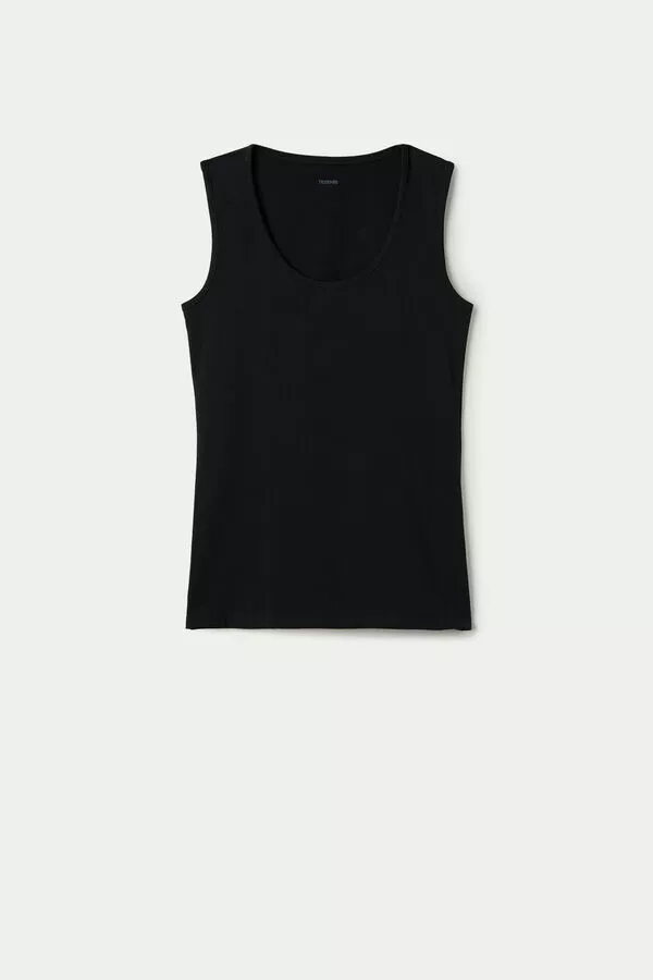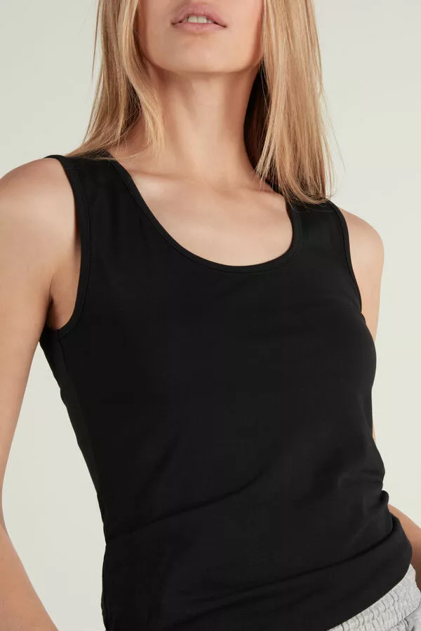 Modal tank top with wide straps and round neckline. The inner brushed fabric insulates against the cold and guarantees warm and enveloping wearability. Slim fit.