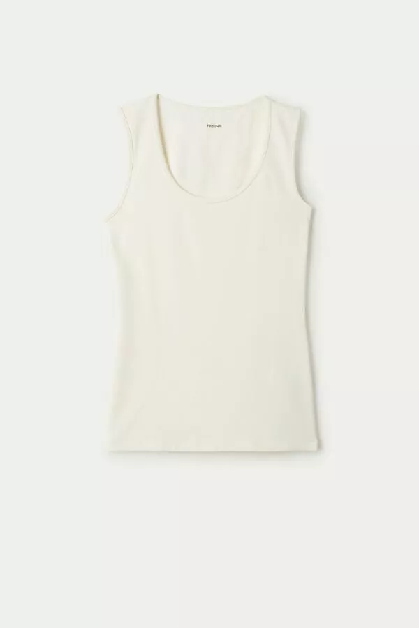 Modal tank top with wide straps and round neckline. The inner brushed fabric insulates against the cold and guarantees warm and enveloping wearability. Slim fit.