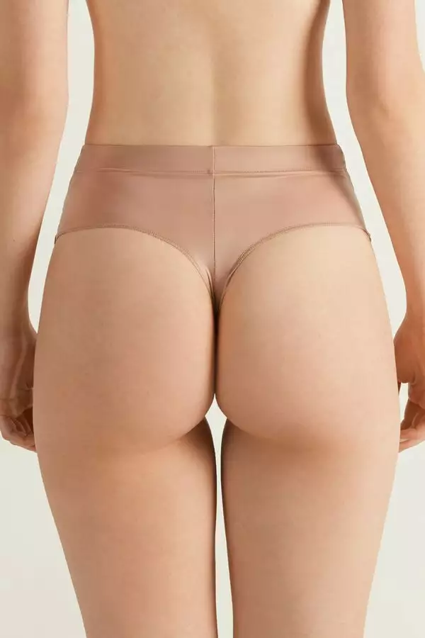 High-waist Brazilian panties made of ultra lightweight, shiny microfiber with shaping effect. The back seam provides a better fit.