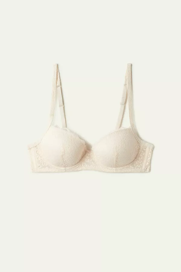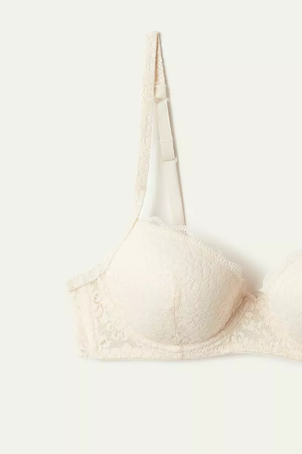 Wien lightly padded, underwire balconette bra with side boning for perfect support. Made from soft recycled lace. Thin adjustable straps and triple hook-and-eye back closure with four rows of hooks.