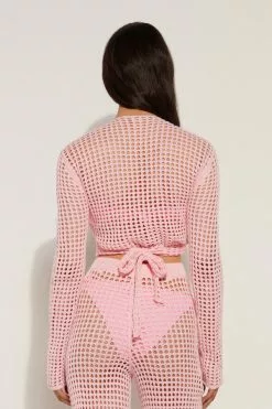 Tezenis Long Sleeve Crop Cardigan/Top In Mesh Crochet